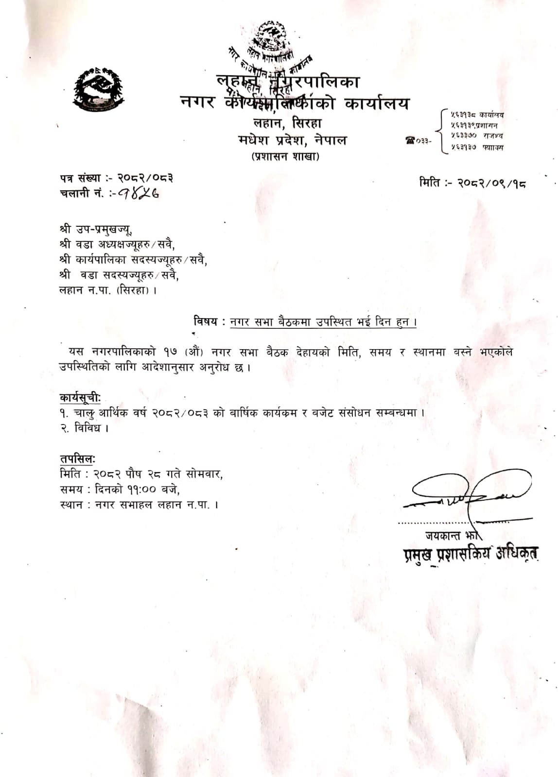 लहान नगरपालिकाको १७ औ नगर सभा बैठकमा उपस्थित भई दिन हुन !