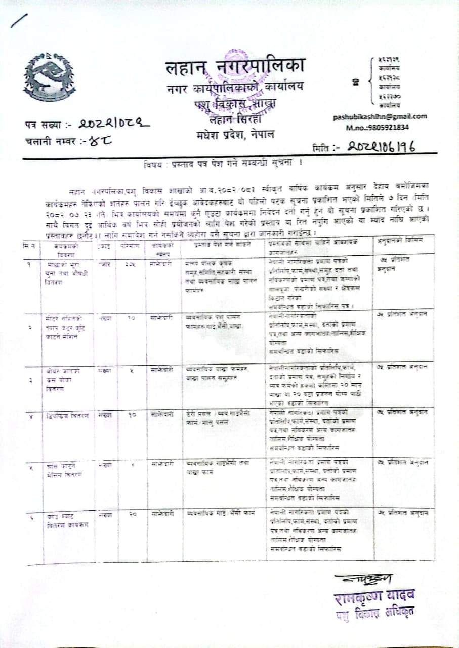 » प्रस्ताव पत्र पेश गर्ने सम्बन्धी सूचना।